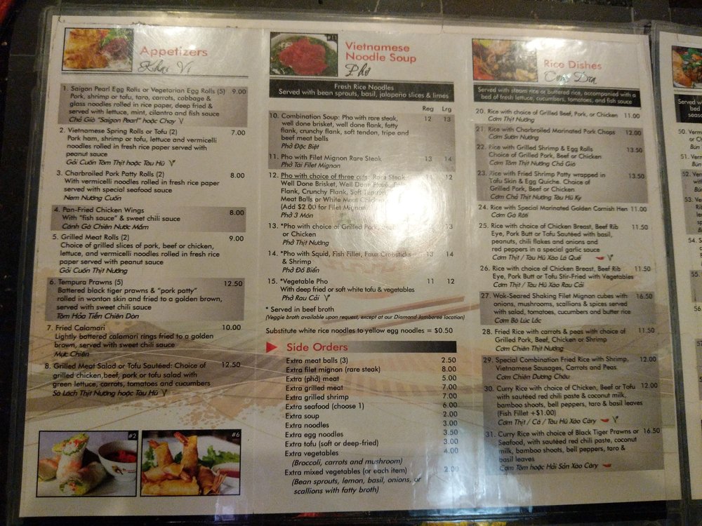 Pho Saigon Pearl is a hidden gem at the Irvine Spectrum, offering a delightful Vietnamese dining experience. With a menu featuring traditional favorites like pho and bánh mì, this restaurant caters to both meat-eaters and vegetarians. The reviews rave about the generous portion sizes, flavorful dishes, and reasonable prices. The friendly staff and quick service make dining here a breeze, whether you're grabbing a quick bite during a shopping trip or enjoying a leisurely meal on the sunny patio. The option for outdoor seating, along with the availability of alcohol and happy hour specials, adds to the appeal of this restaurant. Overall, Pho Saigon Pearl is a must-visit for those craving authentic Vietnamese cuisine in a casual and welcoming atmosphere.